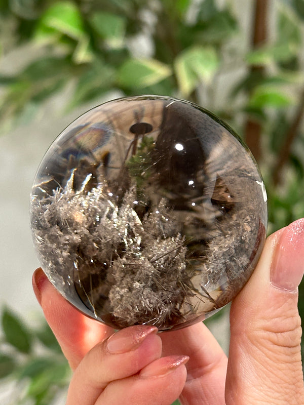 "Silver Garden" Garden Quartz Lodolite with Rutile Sphere