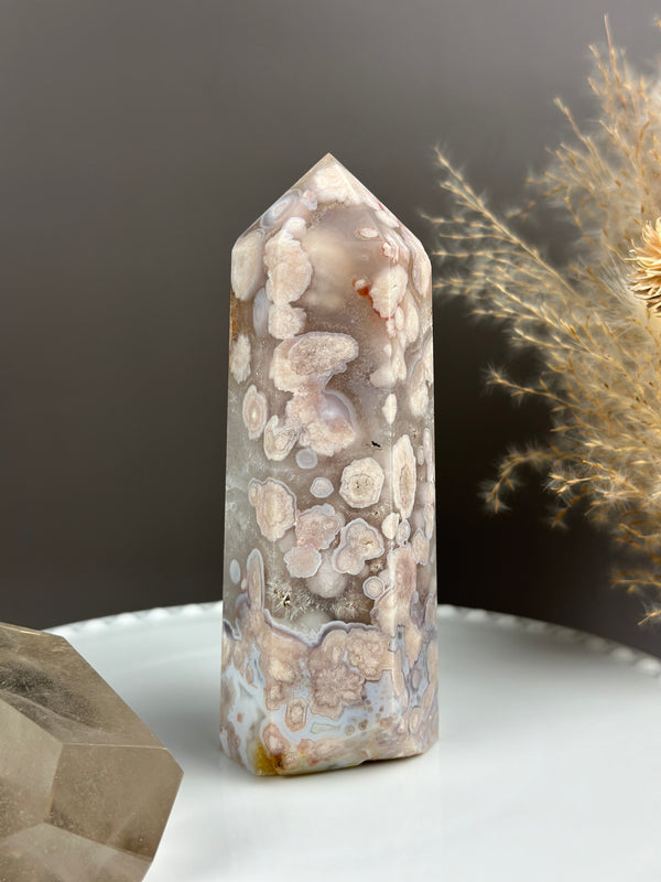 LULLABY Quartzy Milky Baby Blue Flower Agate 6” Tower
