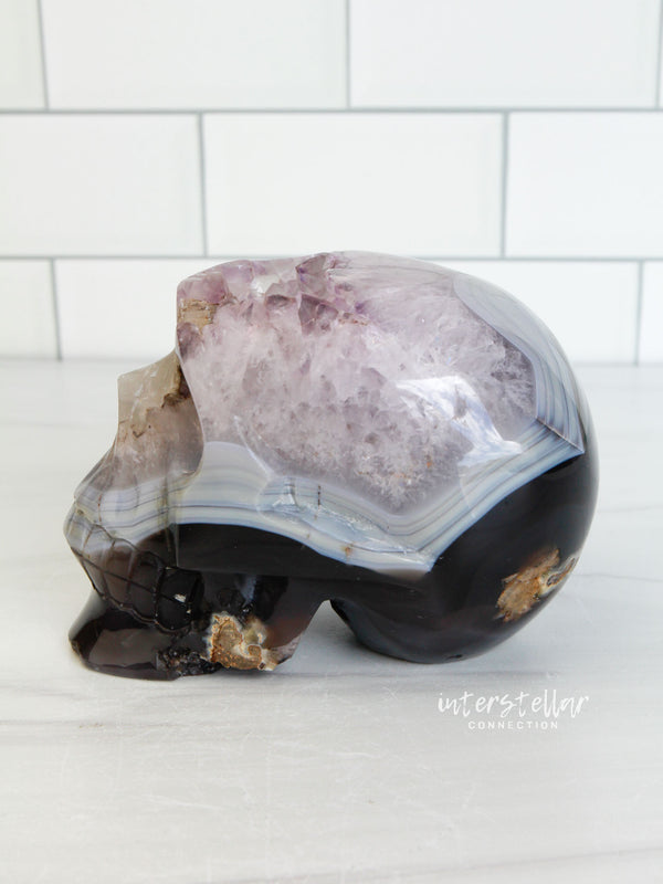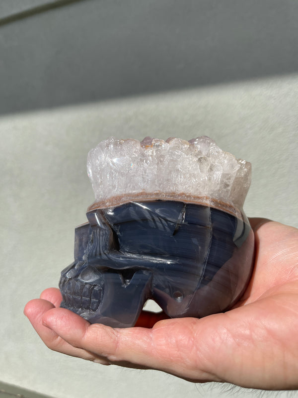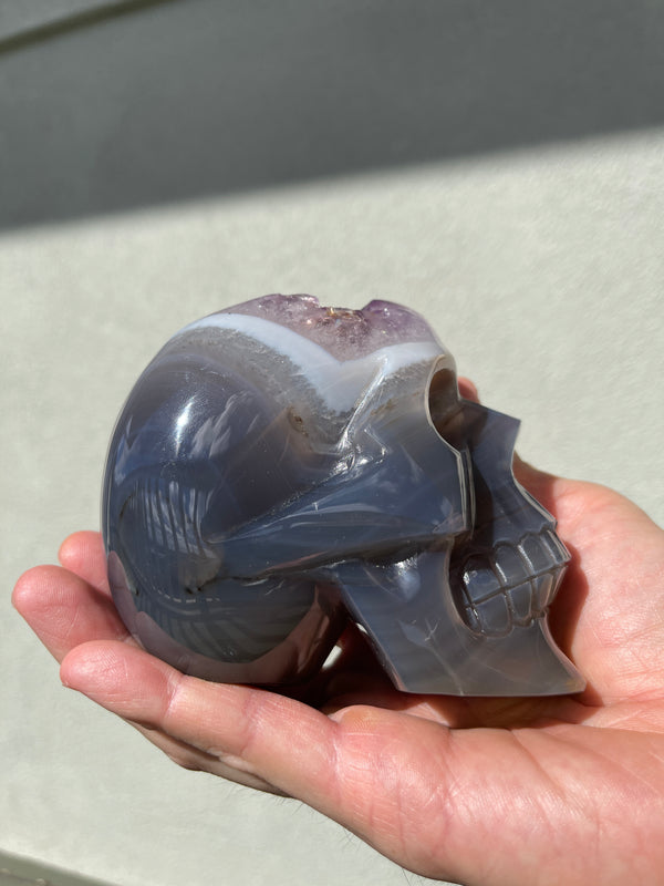 Agate Amethyst Geode 3.75" Hand-carved Skull #S3