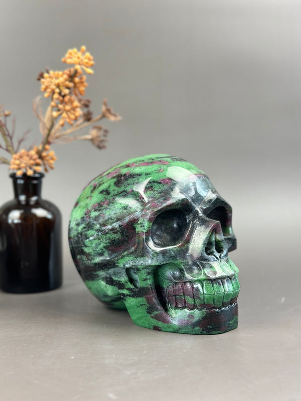 Ruby Zoisite 4.5" Hand-Carved Skull #S12