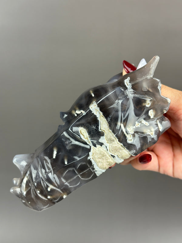 Agate Hand-carved 5" Dragon Skull #D3