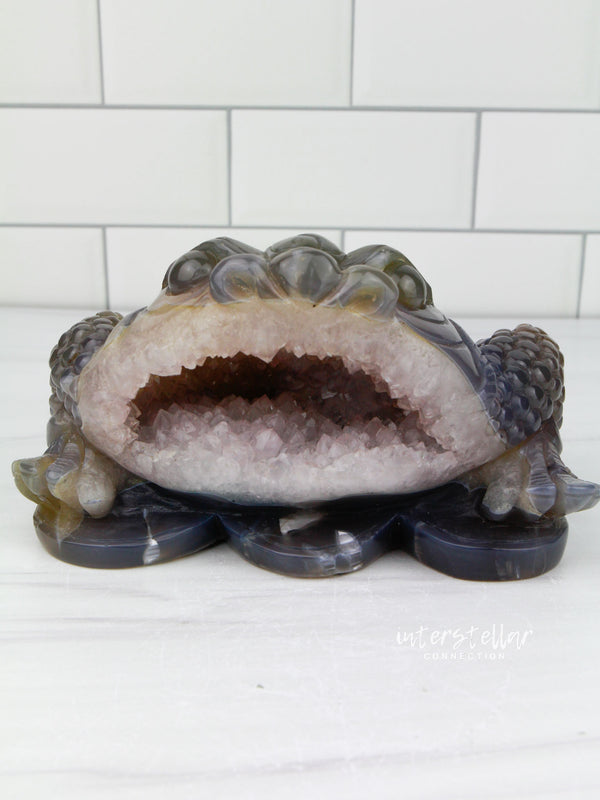 Three-Legged Geode Agate Prosperity Feng Shui Money TOAD Carving - CC