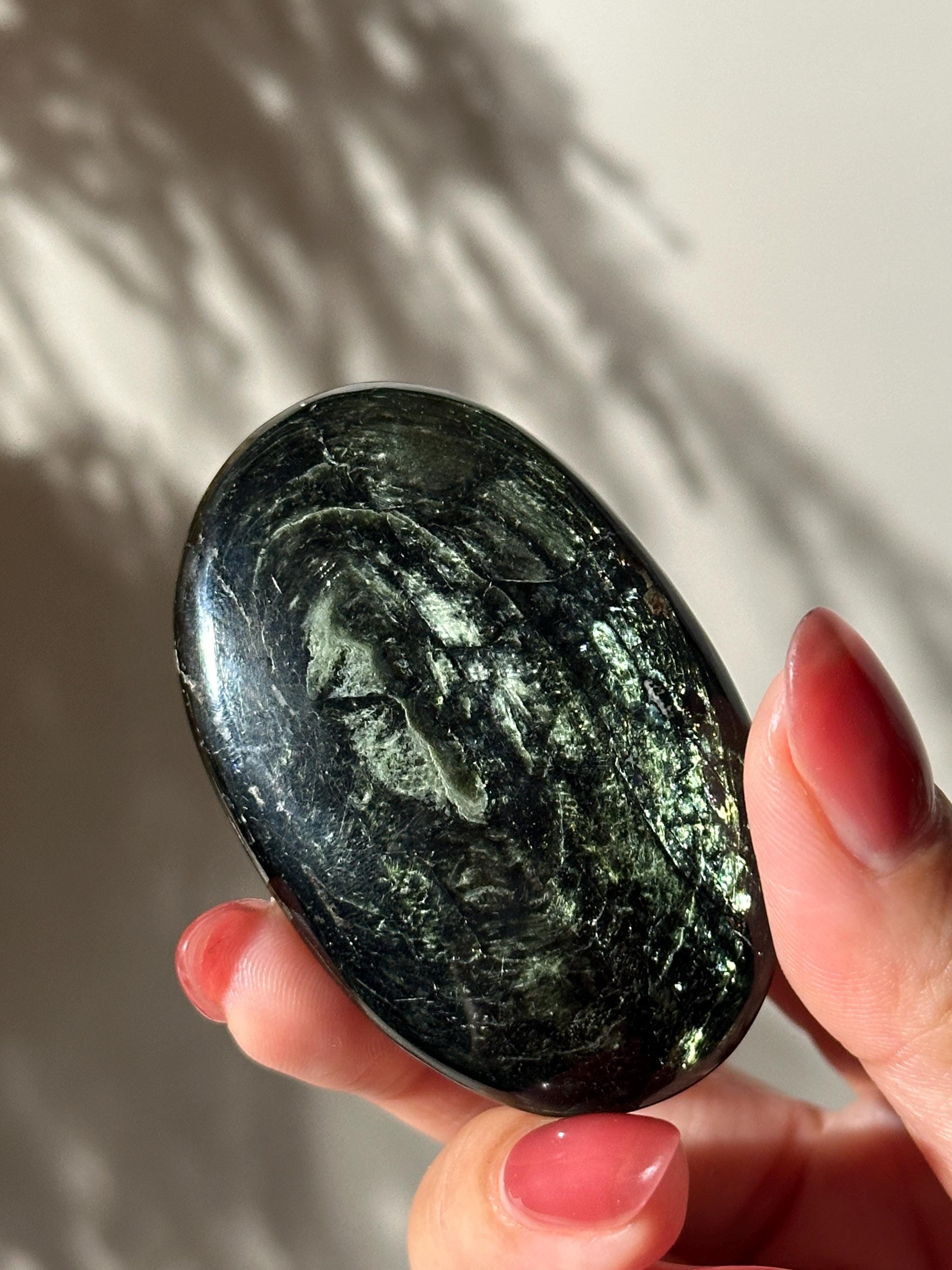 This one-of-a-kind palm stone is a powerful piece of the Earth’s history and a perfect companion for crystal healers, collectors, or anyone drawn to the deep mystery of rare minerals.