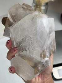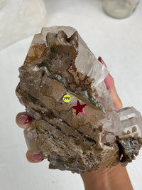Rare calcite cluster with rainbow inclusions from Dalnegorsk, East Russia. Super optical clarity statement piece. MARSHA
