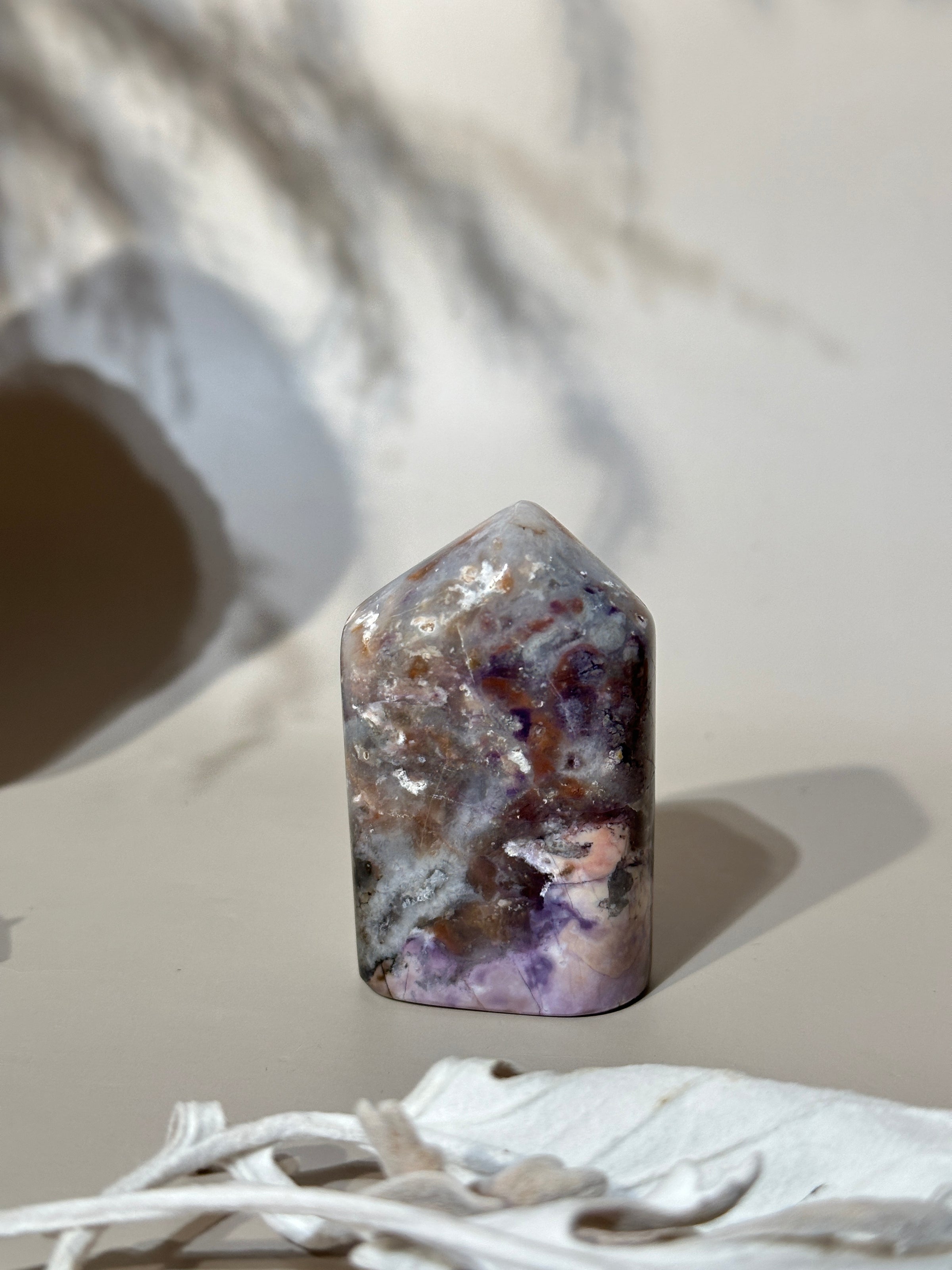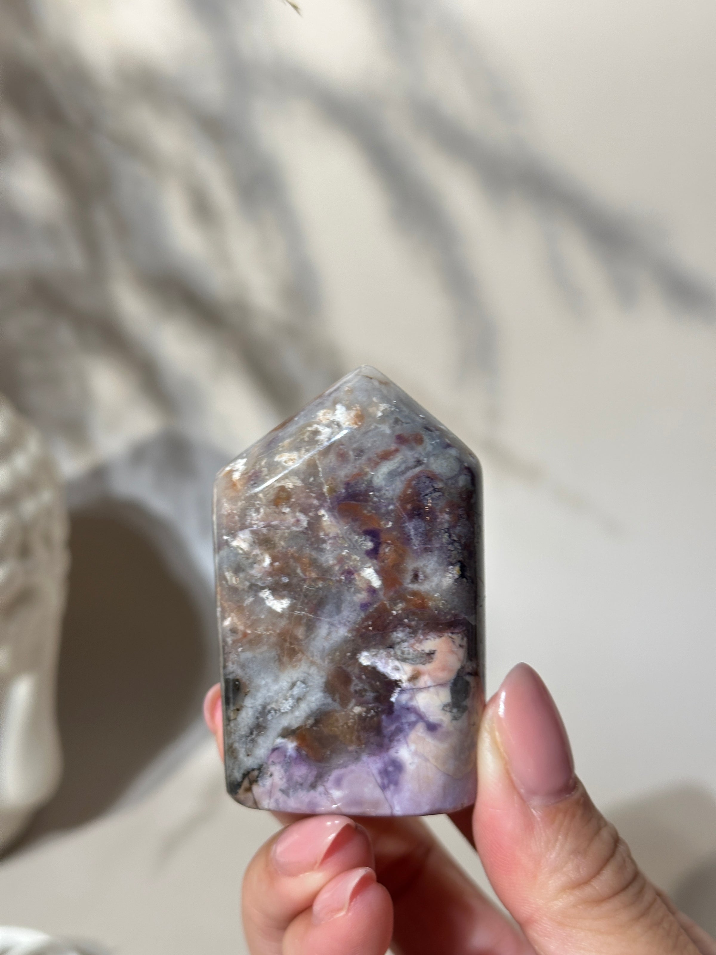 Tiffany Stone—also known as Opalized Fluorite—is a rare and radiant crystal found only in Utah. It’s treasured for its high-frequency energy that enhances intuition, emotional healing, and communication with higher realms. Known as a stone of transformation, it helps you connect with your inner wisdom and flow through change with grace.