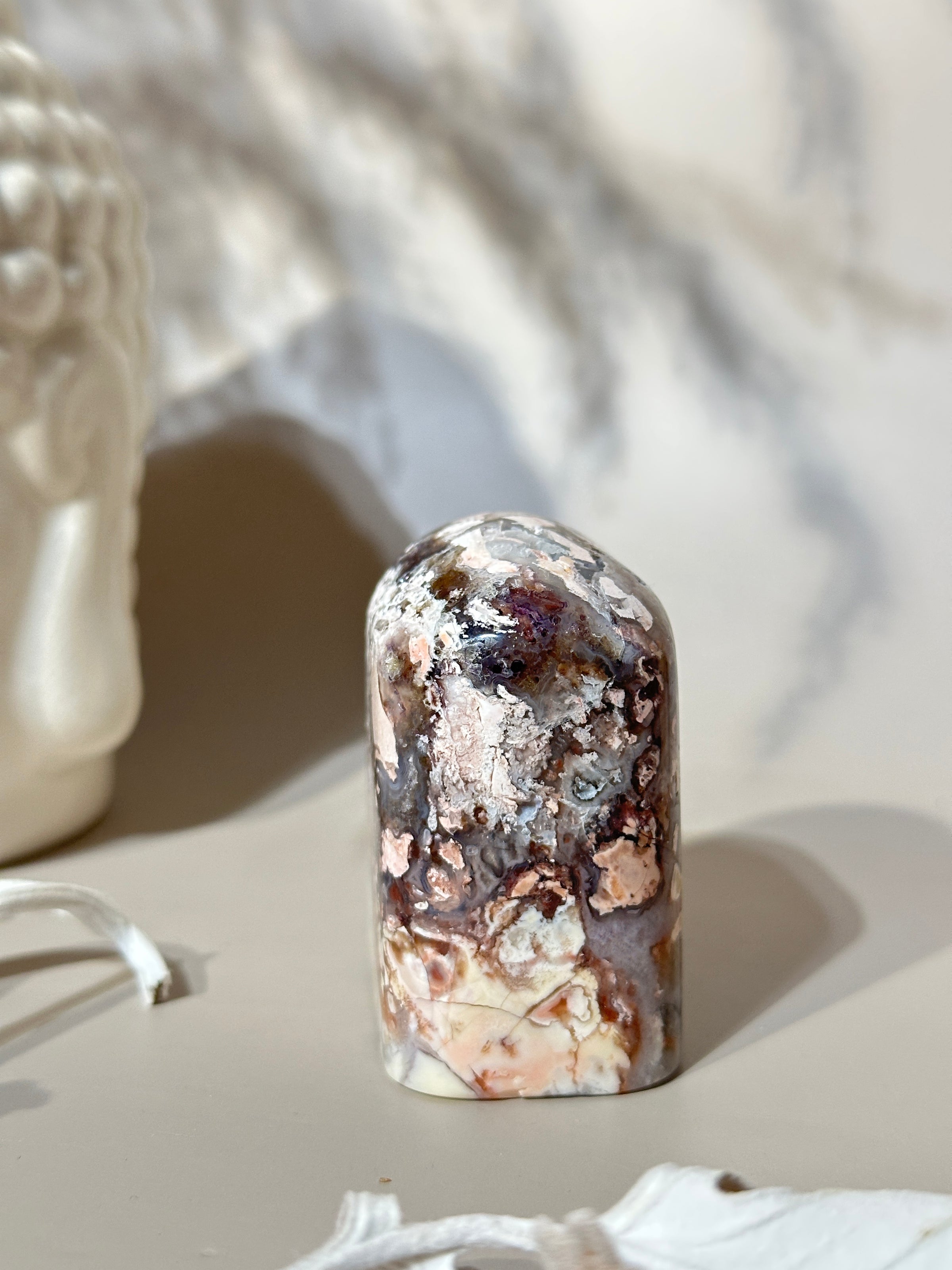 Tiffany Stone—also known as Opalized Fluorite—is a rare and radiant crystal found only in Utah. It’s treasured for its high-frequency energy that enhances intuition, emotional healing, and communication with higher realms. Known as a stone of transformation, it helps you connect with your inner wisdom and flow through change with grace.